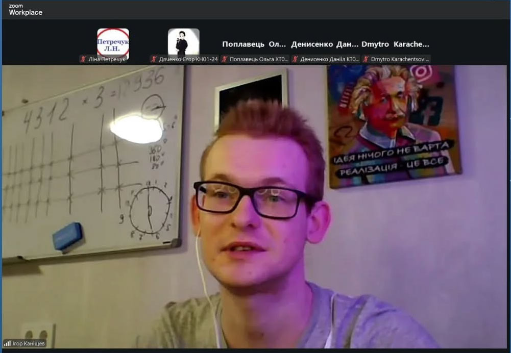 Цього року ми розширили формат і зустріли КіберВесну всім факультетом прикладних комп'ютерних технологій разом із співробітниками, студентами, випускниками і абітурієнтами. Як завжди цього дня з нами на зв'язку була випускниця нашої кафедри, нині професор Гданської політехніки Різун Ніна Олегівна. Також до онлайн-конференції долучилися наші випускники (гр. ЕК01-12) Ілона Катульська і Назар Гуліда, які навіть написали вірша до Дня кібернетика. Студенти-активісти факультету були нагороджені грамотами і дипломами. І традиційно наш золотий фонд поповнився новими кібернетиками. Цього року до нас долучилися і абітурієнти, які взяли участь у брейн-рингу і продемонстрували роботу свого потужного мозку-процесора.