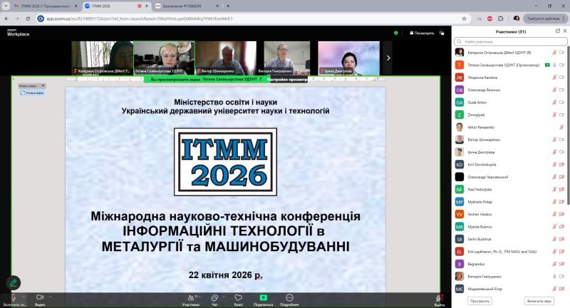 Міжнародної науково-технічної конференції «Інформаційні Технології в Металургії та Машинобудуванні ІТММ 2026», захід відбудеться 22 квітня в online форматі з використанням платформи Zoom.