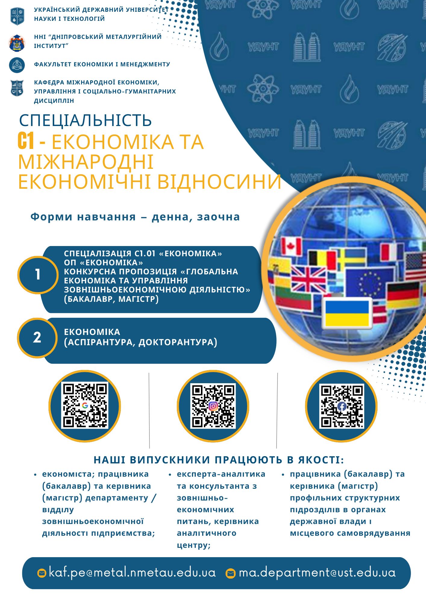 2. Спеціальність: «C1 Економіка та міжнародні економічні відносини». Назва пропозиції: «ДМетІ_Глобальна економіка та управління зовнішньоекономічною діяльністю». Освітня програма: «Економіка». Перший (бакалаврський) рівень вищої освіти